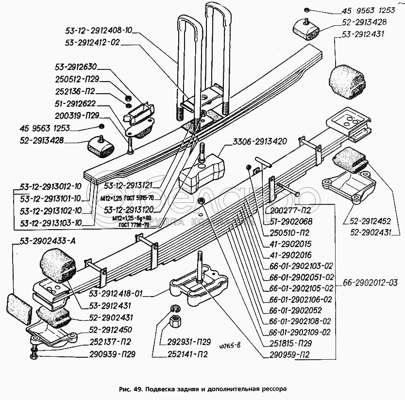 Каталог запасных частей к технике: ГАЗ-3306. Подвеска задняя и дополнительная рессора
