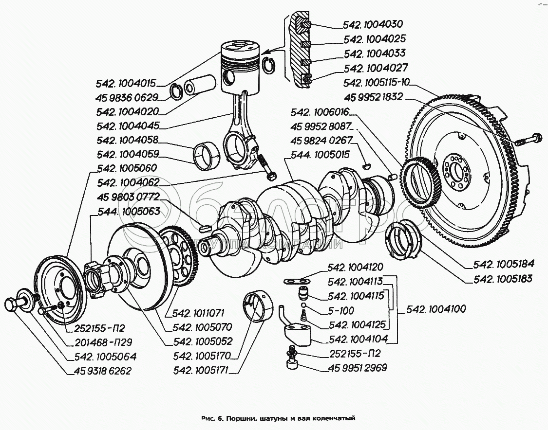 Каталог запасных частей к технике: ГАЗ-3306. Поршни, шатуны и вал коленчатый