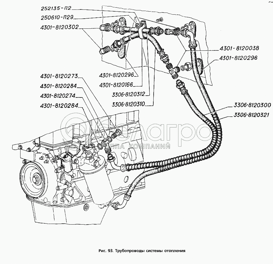 Каталог запасных частей к технике: ГАЗ-3306. Трубопроводы системы отопления