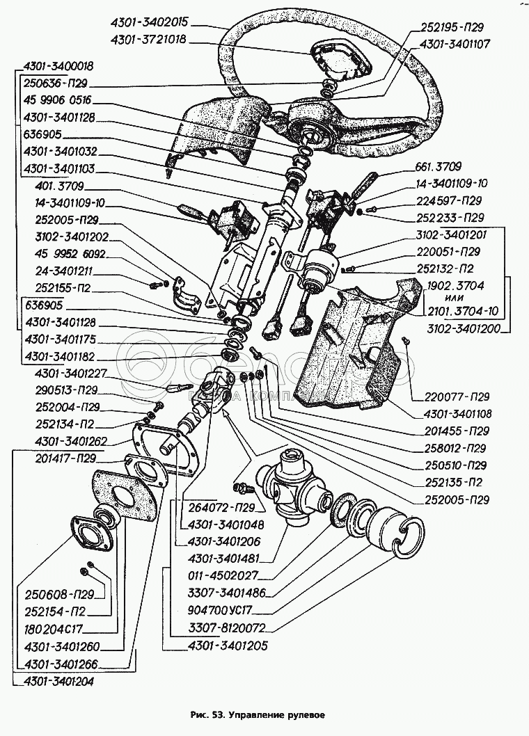 Каталог запасных частей к технике: ГАЗ-3306. Управление рулевое