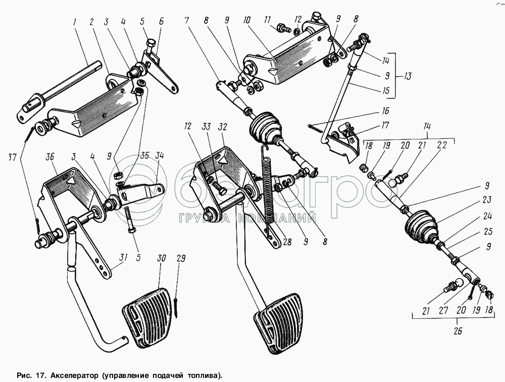 Каталог запасных частей к технике: ГАЗ-3307. Акселератор (управление подачей топлива)