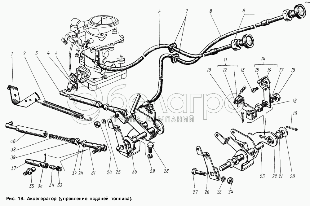 Каталог запасных частей к технике: ГАЗ-3307. Акселератор (управление подачей топлива)