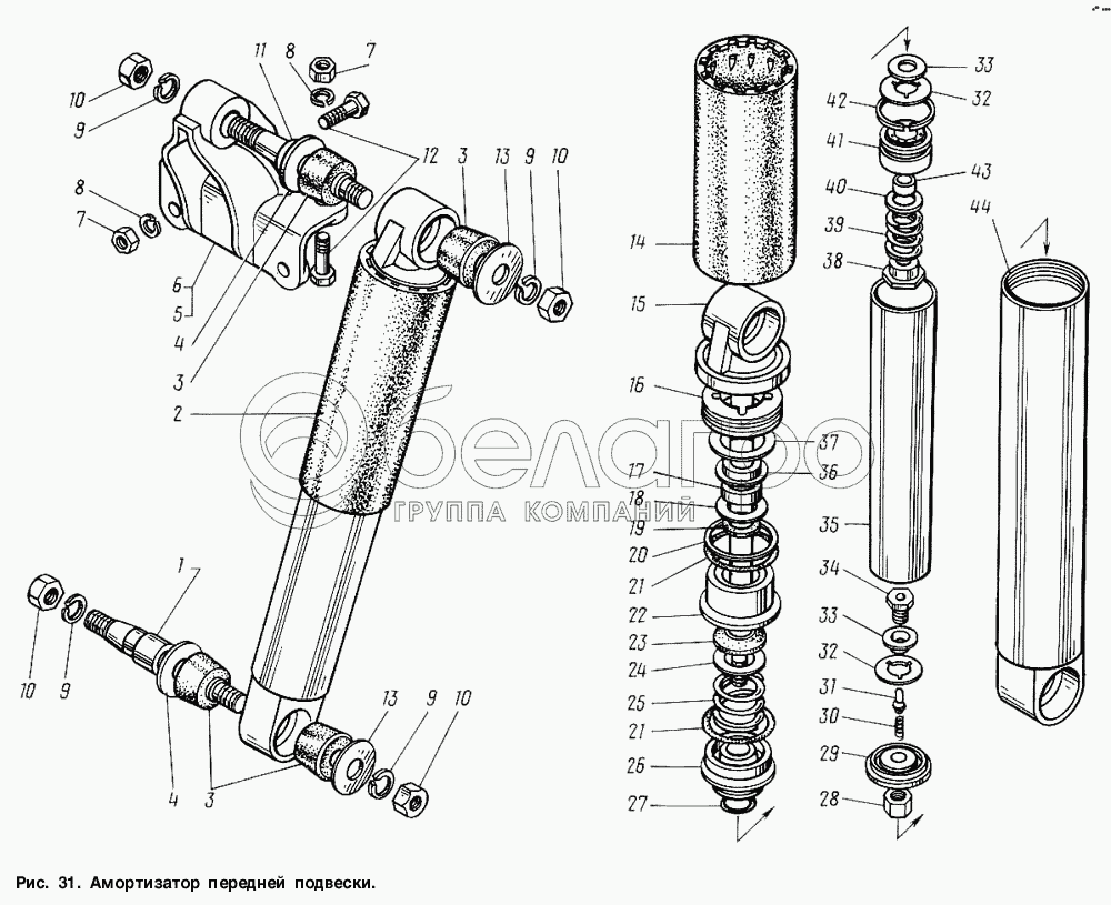 Каталог запасных частей к технике: ГАЗ-3307. Амортизатор передней подвески
