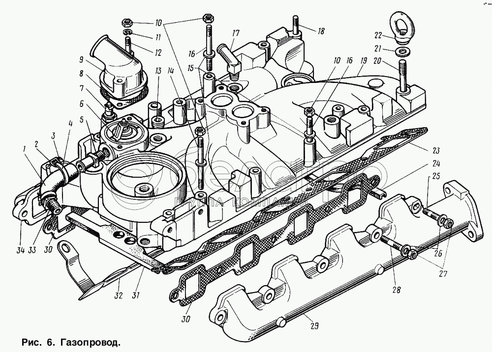 Каталог запасных частей к технике: ГАЗ-3307. Газопровод