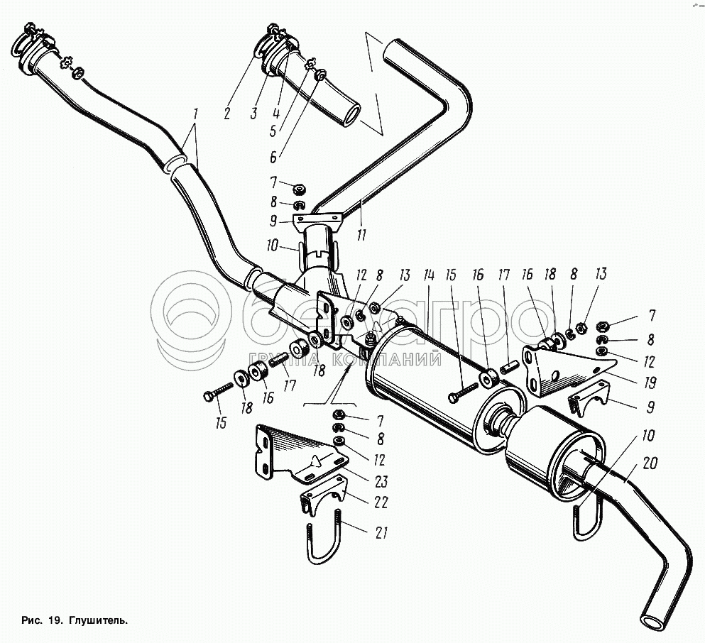 Каталог запасных частей к технике: ГАЗ-3307. Глушитель