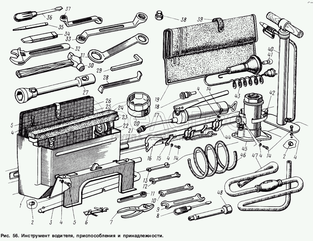 Каталог запасных частей к технике: ГАЗ-3307. Инструмент водителя, приспособления и принадлежности