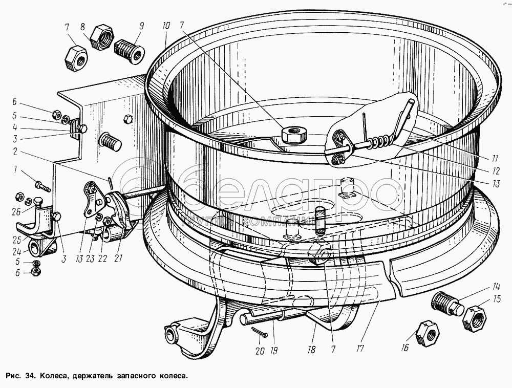 Каталог запасных частей к технике: ГАЗ-3307. Колеса, держатель запасного колеса