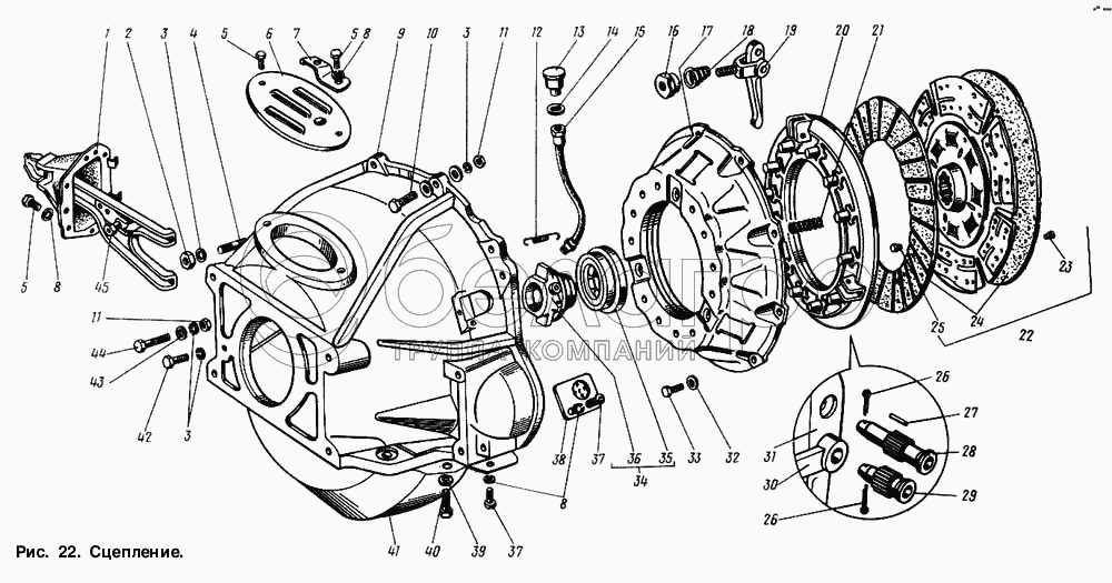 Каталог запасных частей к технике: ГАЗ-3307. Сцепление