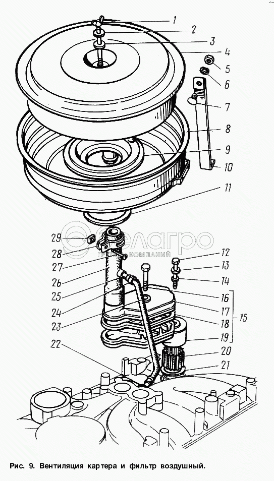 Каталог запасных частей к технике: ГАЗ-3307. Вентиляция картера и фильтр воздушный