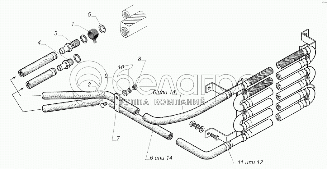 Каталог запасных частей к технике: ГАЗ-33081. 33081-1013001-30. Установка шлангов