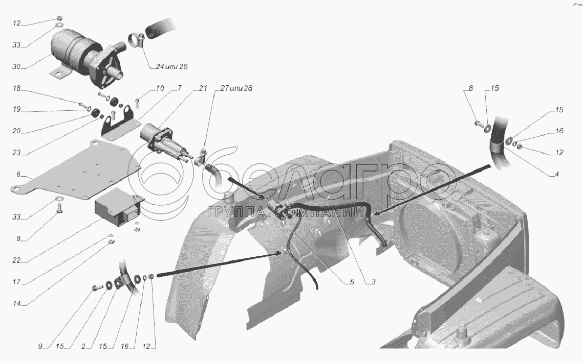 Каталог запасных частей к технике: ГАЗ-33081. 33081-1015003. Установка пускового подогревательного устройства