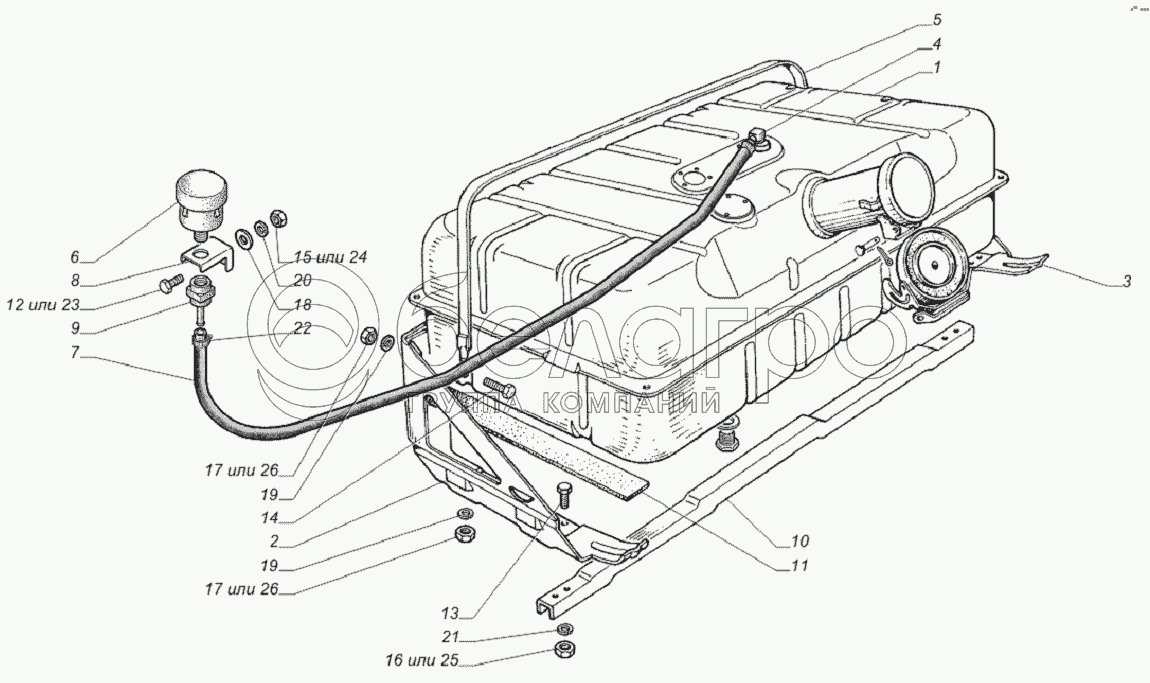 Каталог запасных частей к технике: ГАЗ-33081. 33081-1101001-40. Установка топливного бака