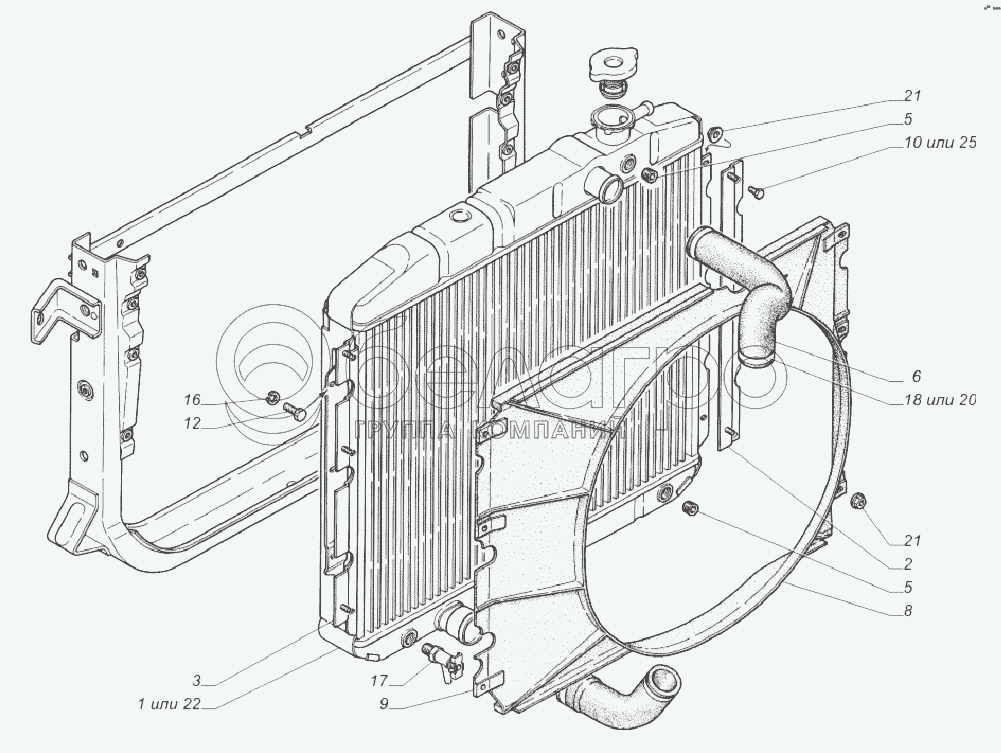 Каталог запасных частей к технике: ГАЗ-33081. 33081-1301003. Установка радиатора