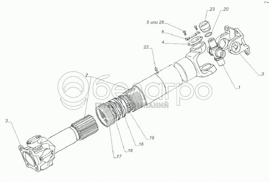 Каталог запасных частей к технике: ГАЗ-33081. 33081-2202010. Вал карданный промежуточный