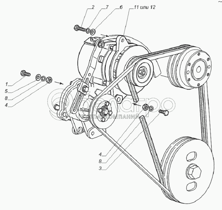 Каталог запасных частей к технике: ГАЗ-33081. 33081-3701004. Установка генератора