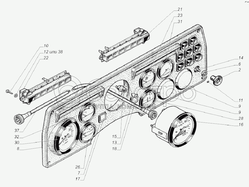 Каталог запасных частей к технике: ГАЗ-33081. 33081-3805010-30. Щиток приборов