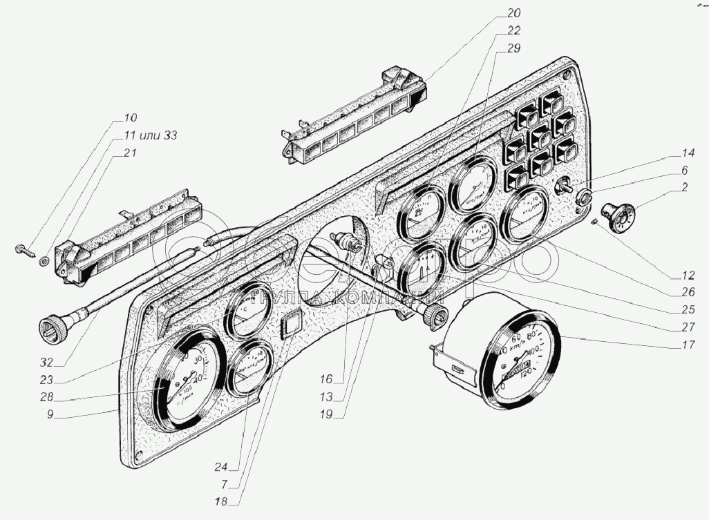 Каталог запасных частей к технике: ГАЗ-33081. 33081-3805010-50. Щиток приборов