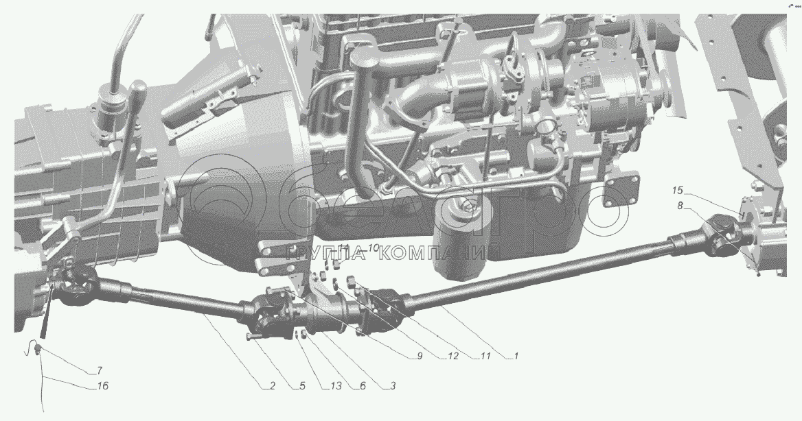 Каталог запасных частей к технике: ГАЗ-33081. 33081-4502001. Установка карданных валов привода лебедки