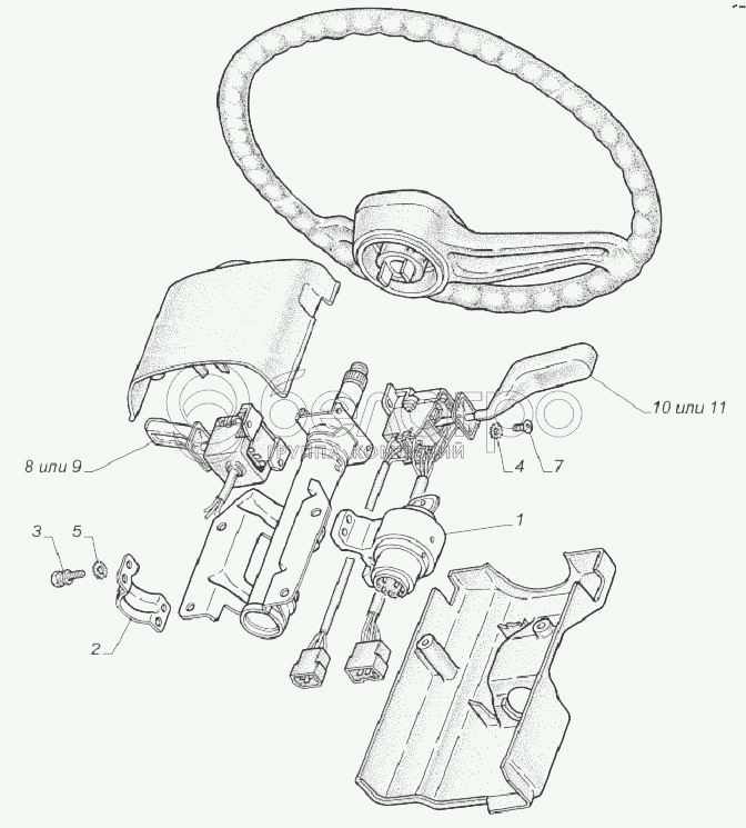 Каталог запасных частей к технике: ГАЗ-33081. 3308-3704002. Установка выключателя зажигания