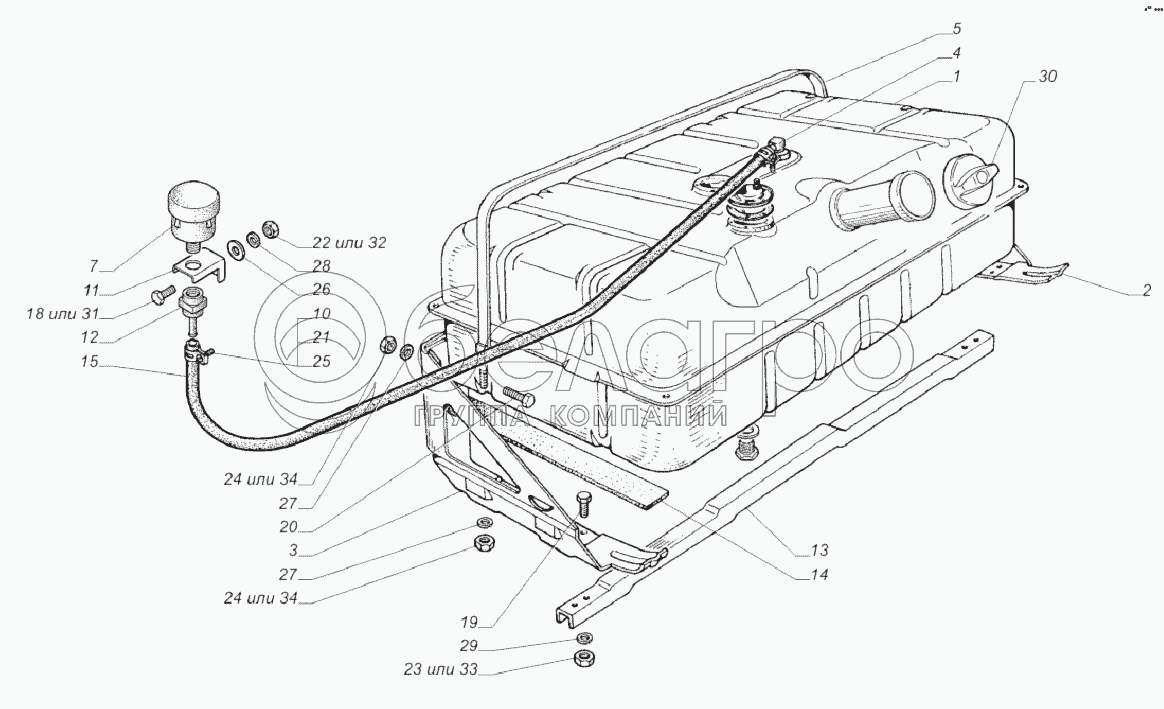 Каталог запасных частей к технике: ГАЗ-33081. 33097-1101001. Установка топливного бака