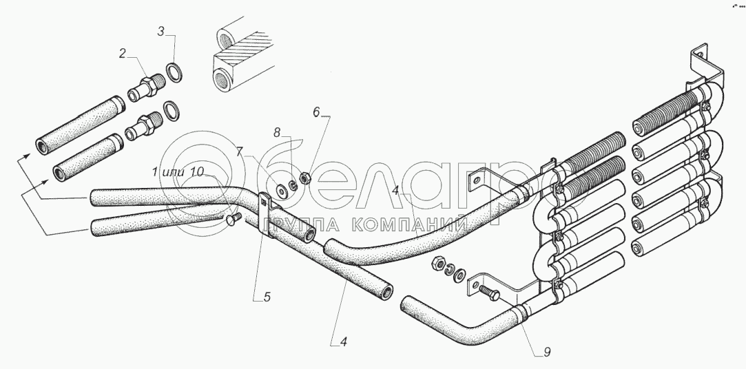 Каталог запасных частей к технике: ГАЗ-33081. 3309-1013001-10. Установка шлангов