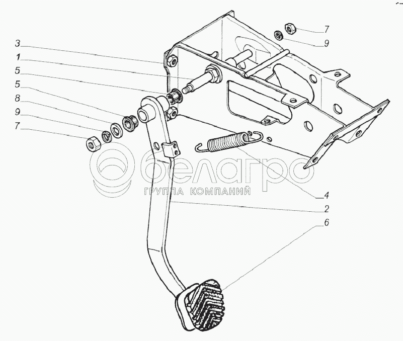 Каталог запасных частей к технике: ГАЗ-33081. 3309-1602408. Кронштейн с педалью сцепления