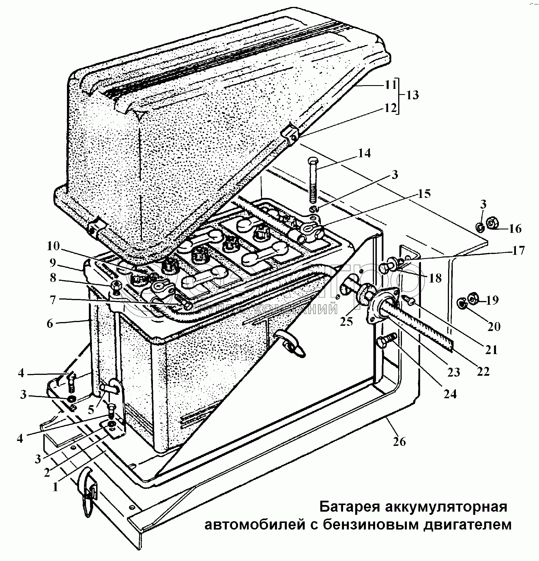 Каталог запасных частей к технике: ГАЗ-3308. Батарея аккумуляторная автомобиля с бензиновым двигателем