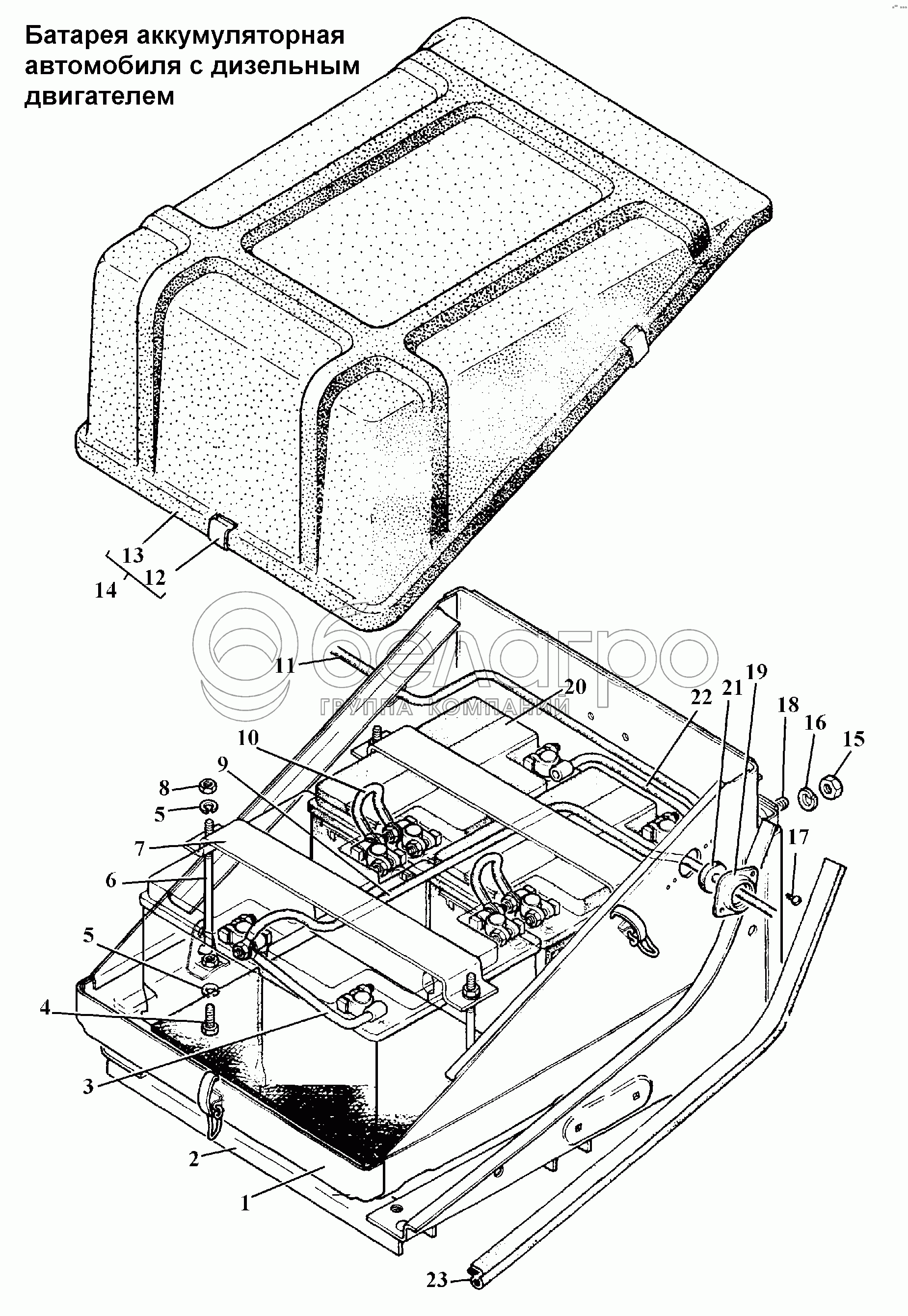 Каталог запасных частей к технике: ГАЗ-3308. Батарея аккумуляторная автомобиля с дизельным двигателем