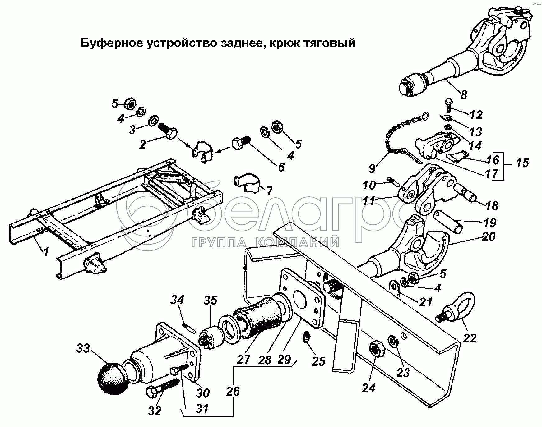 Каталог запасных частей к технике: ГАЗ-3308. Буферное устройство заднее, крюк тяговый