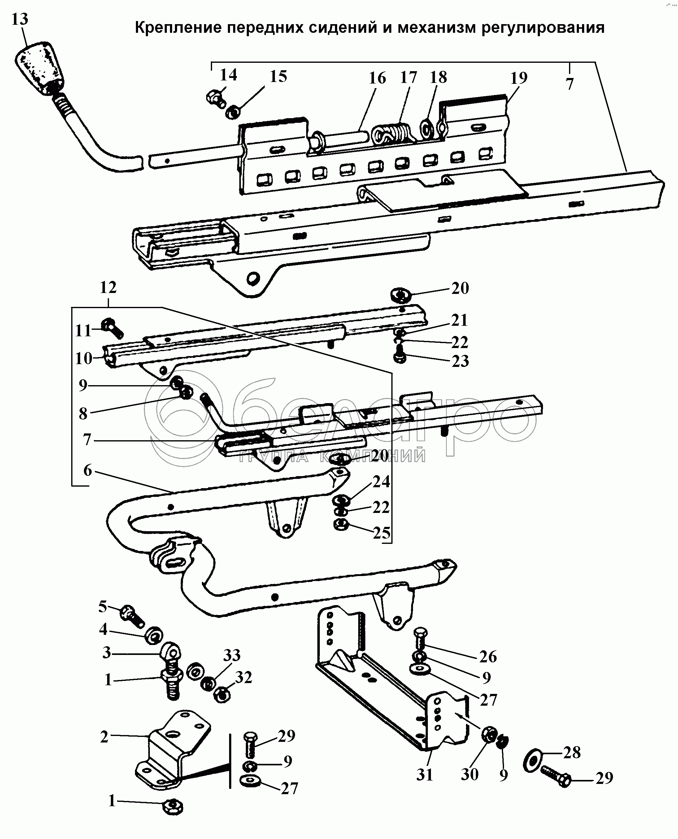 Каталог запасных частей к технике: ГАЗ-3308. Крепление передних сидений и механизм регулирования