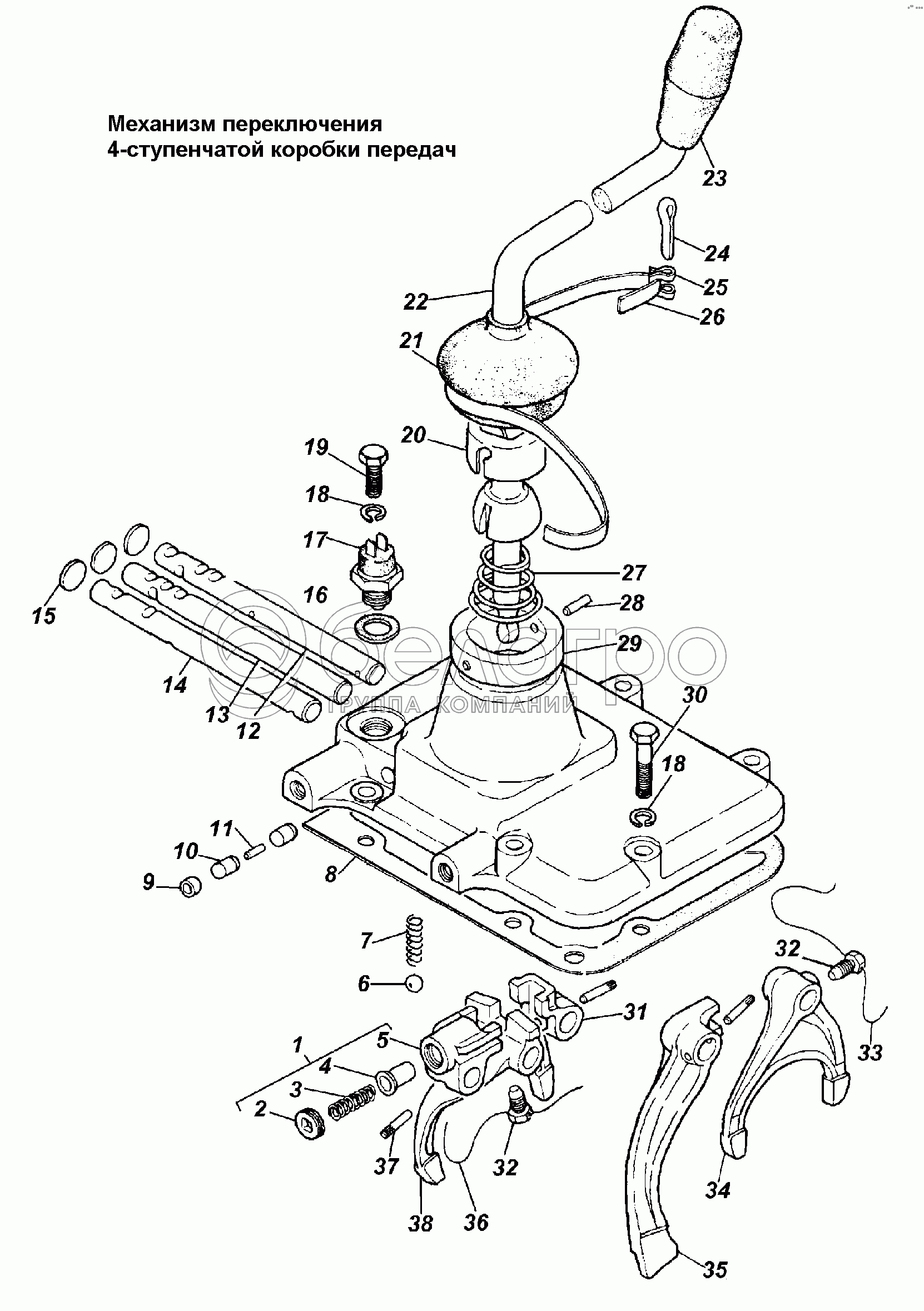 Каталог запасных частей к технике: ГАЗ-3308. Механизм переключения 4-ступенчатой коробки передач