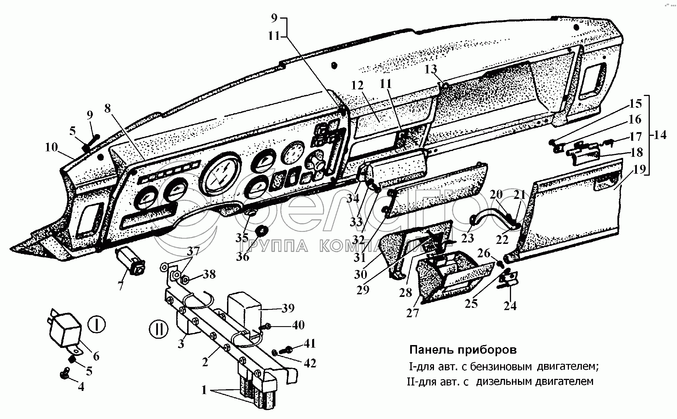 Каталог запасных частей к технике: ГАЗ-3308. Панель приборов