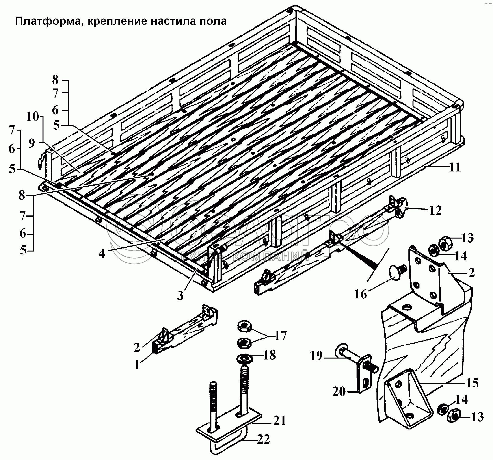 Каталог запасных частей к технике: ГАЗ-3308. Платформа, крепление настила пола
