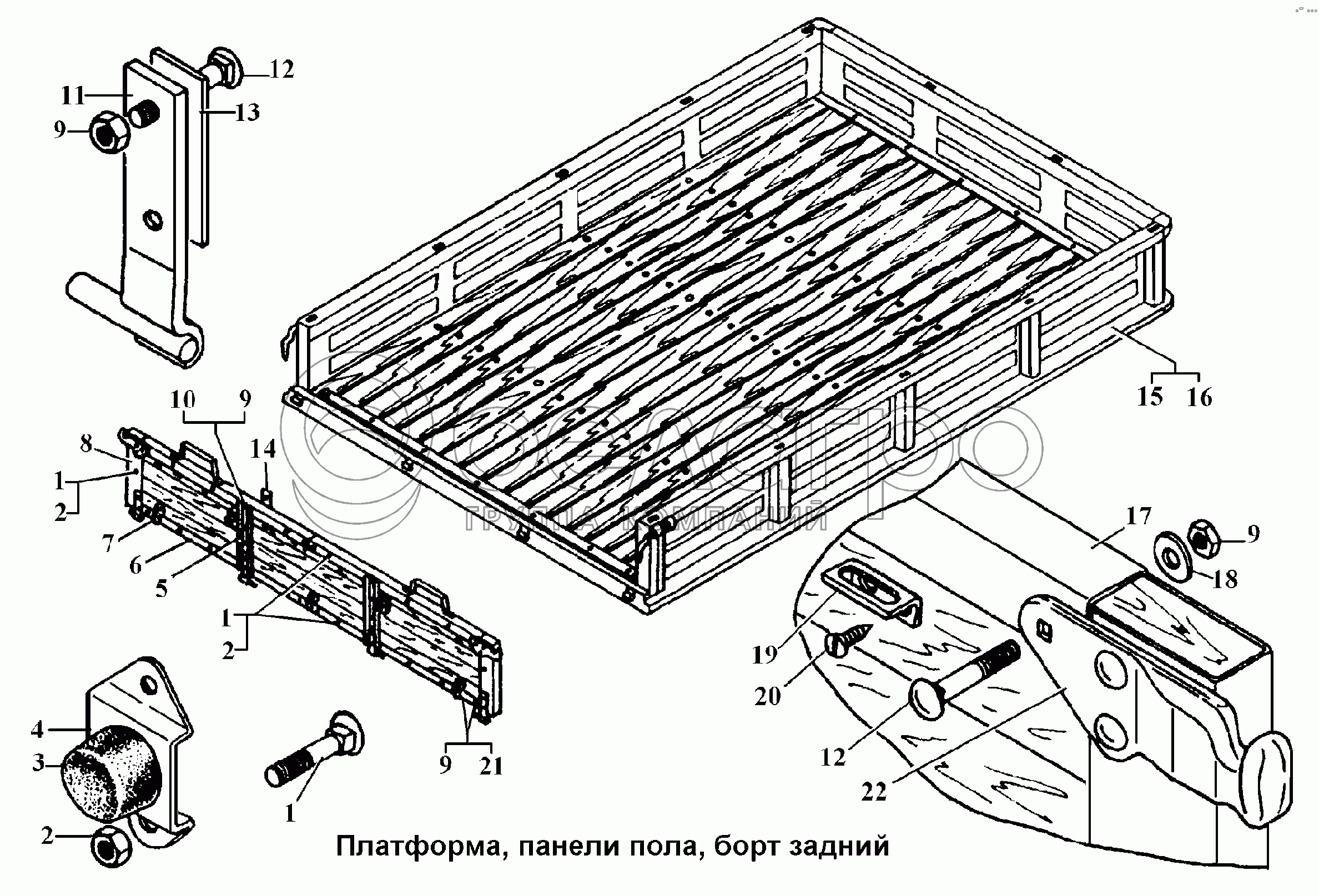 Каталог запасных частей к технике: ГАЗ-3308. Платформа, панели пола, борт задний