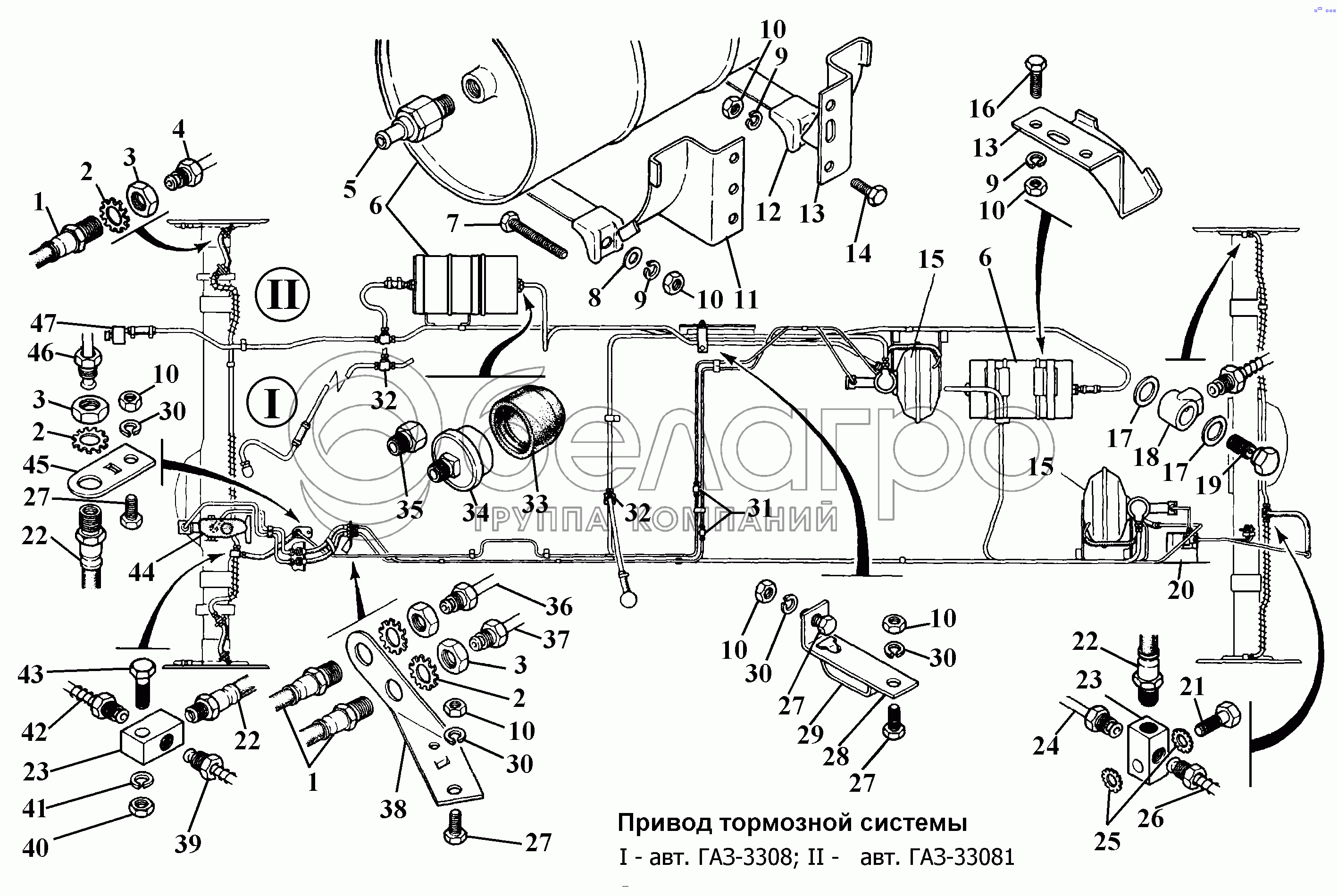 Каталог запасных частей к технике: ГАЗ-3308. Привод тормозной системы