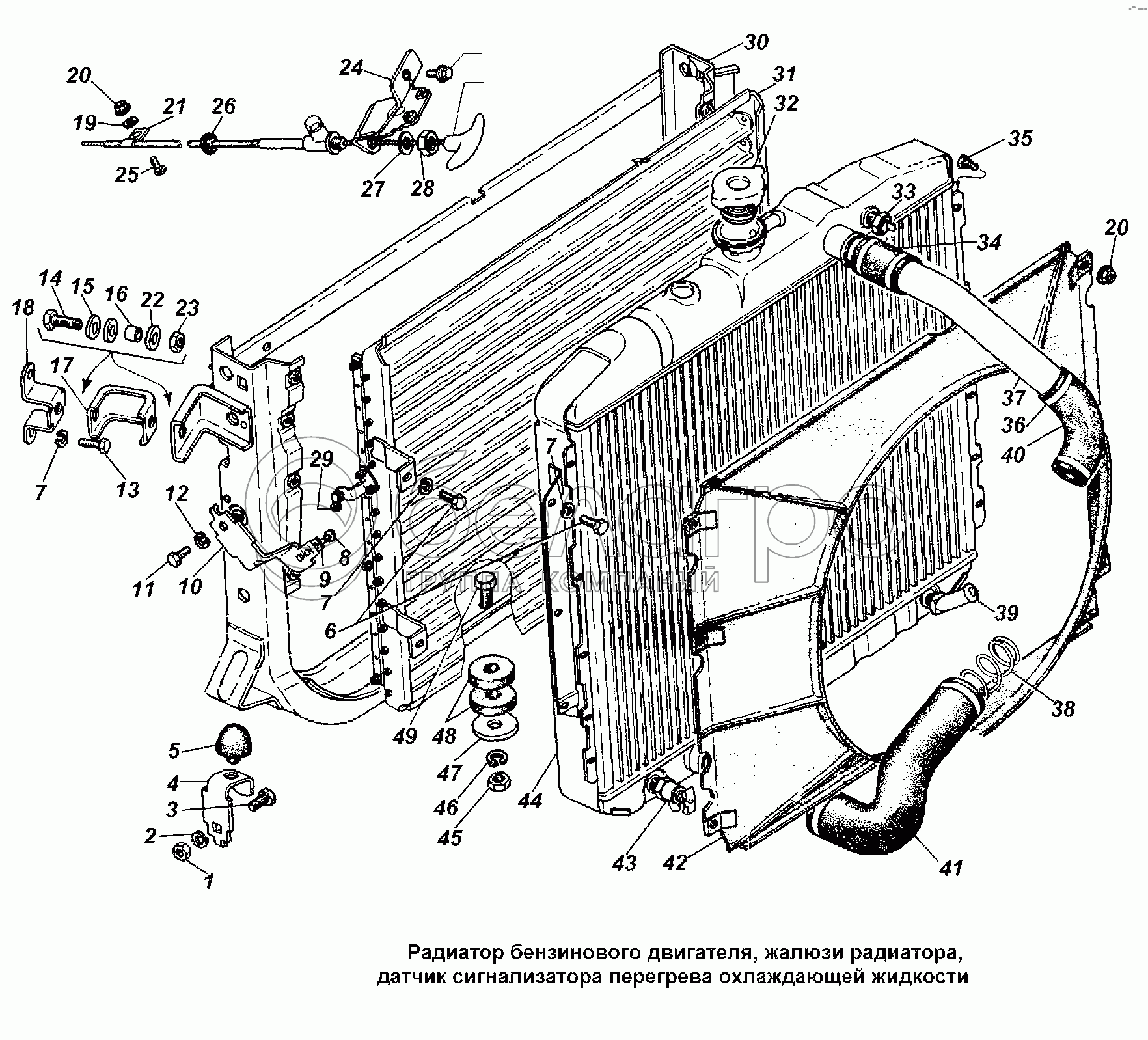 Каталог запасных частей к технике: ГАЗ-3308. Радиатор бензинового двигателя