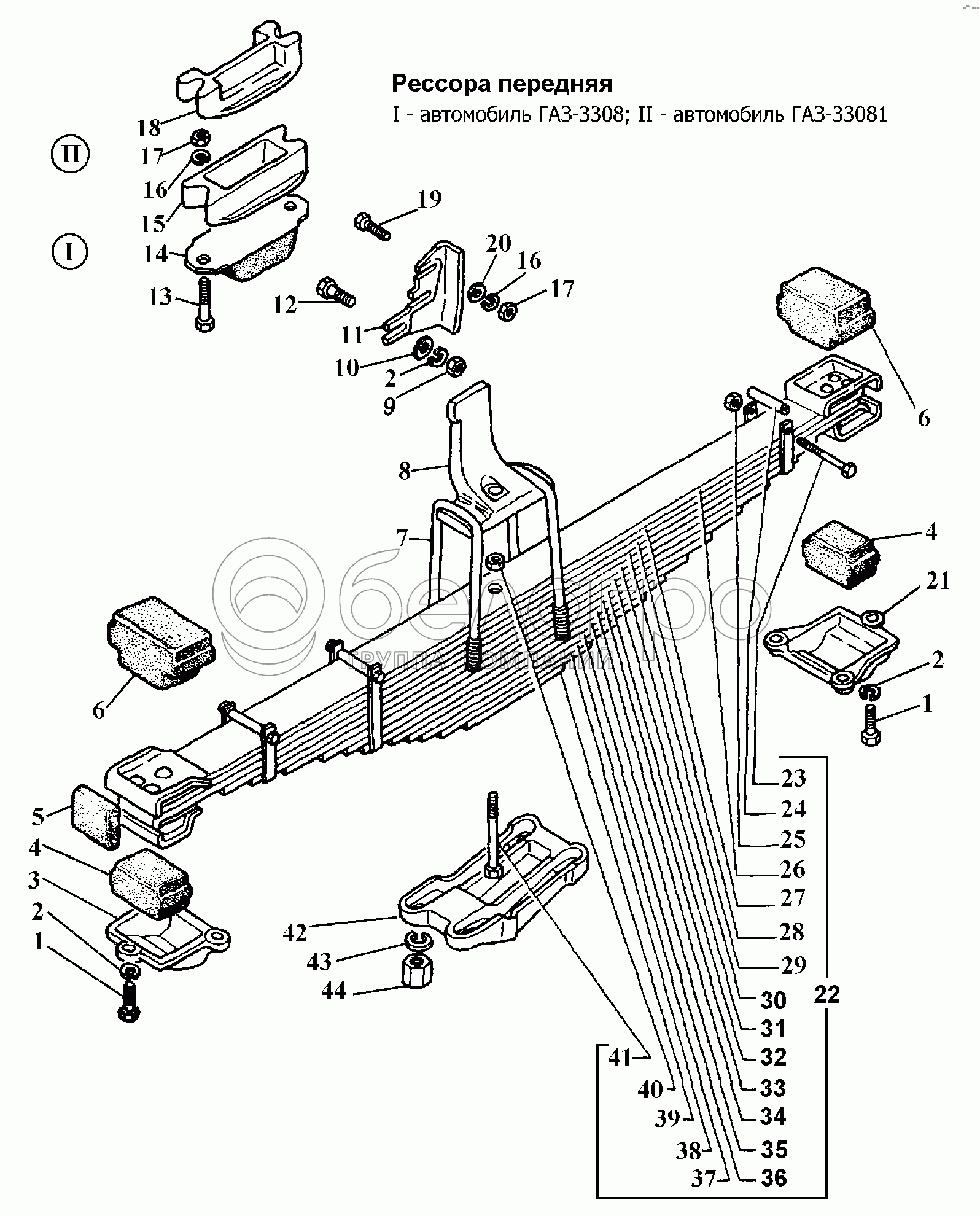 Каталог запасных частей к технике: ГАЗ-3308. Рессора передняя