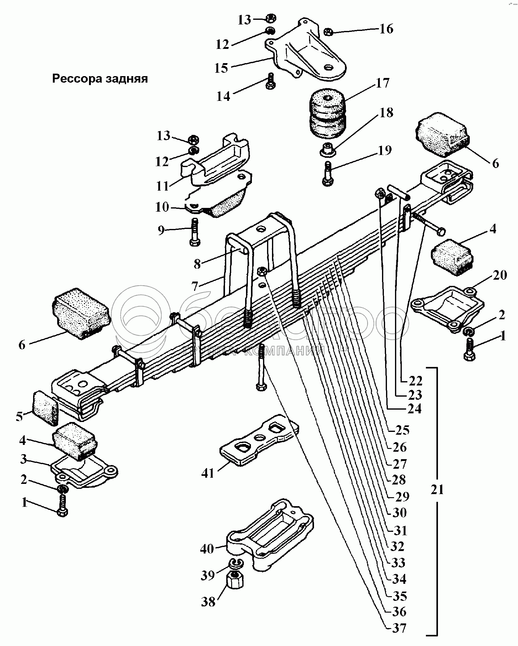 Каталог запасных частей к технике: ГАЗ-3308. Рессора задняя