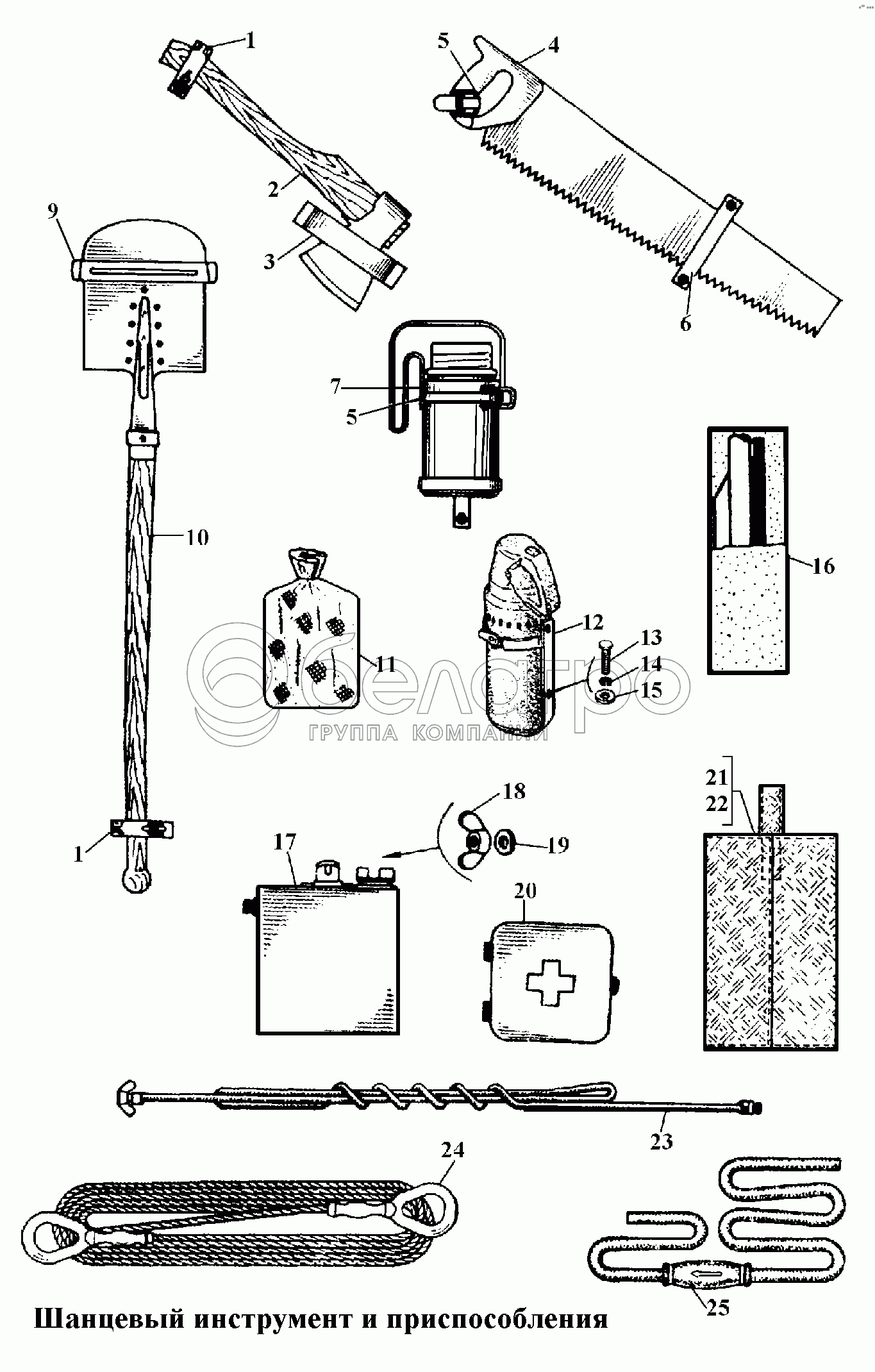 Каталог запасных частей к технике: ГАЗ-3308. Шанцевый инструмент и приспособления
