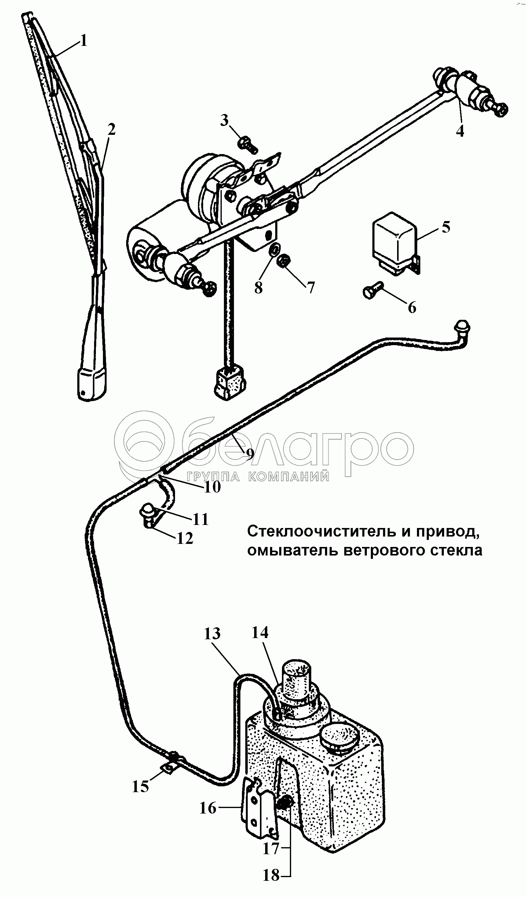 Каталог запасных частей к технике: ГАЗ-3308. Стеклоочиститель и привод, омыватель ветрового стекла
