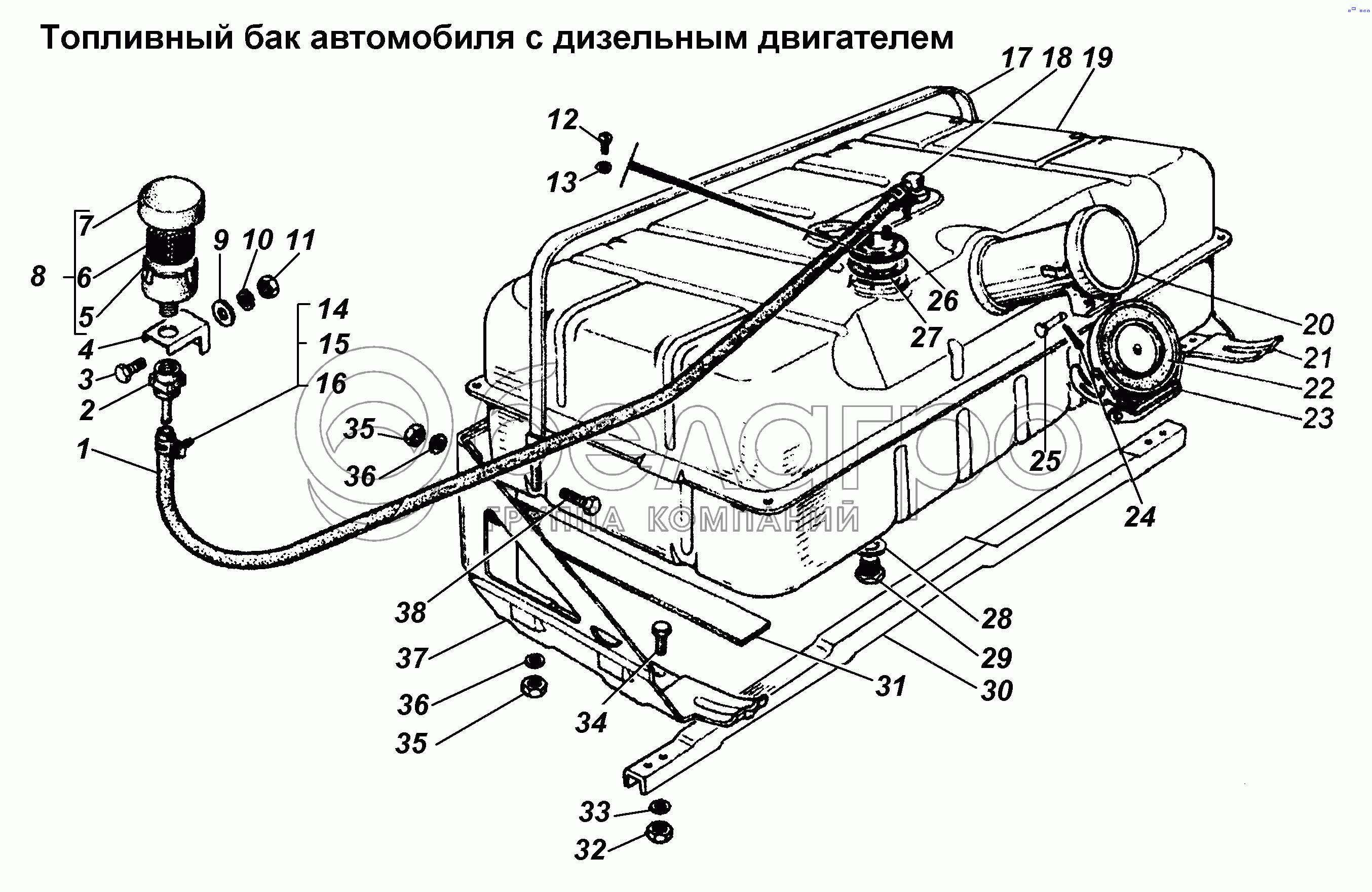 Каталог запасных частей к технике: ГАЗ-3308. Топливный баки автомобиля с дизельным двигателем
