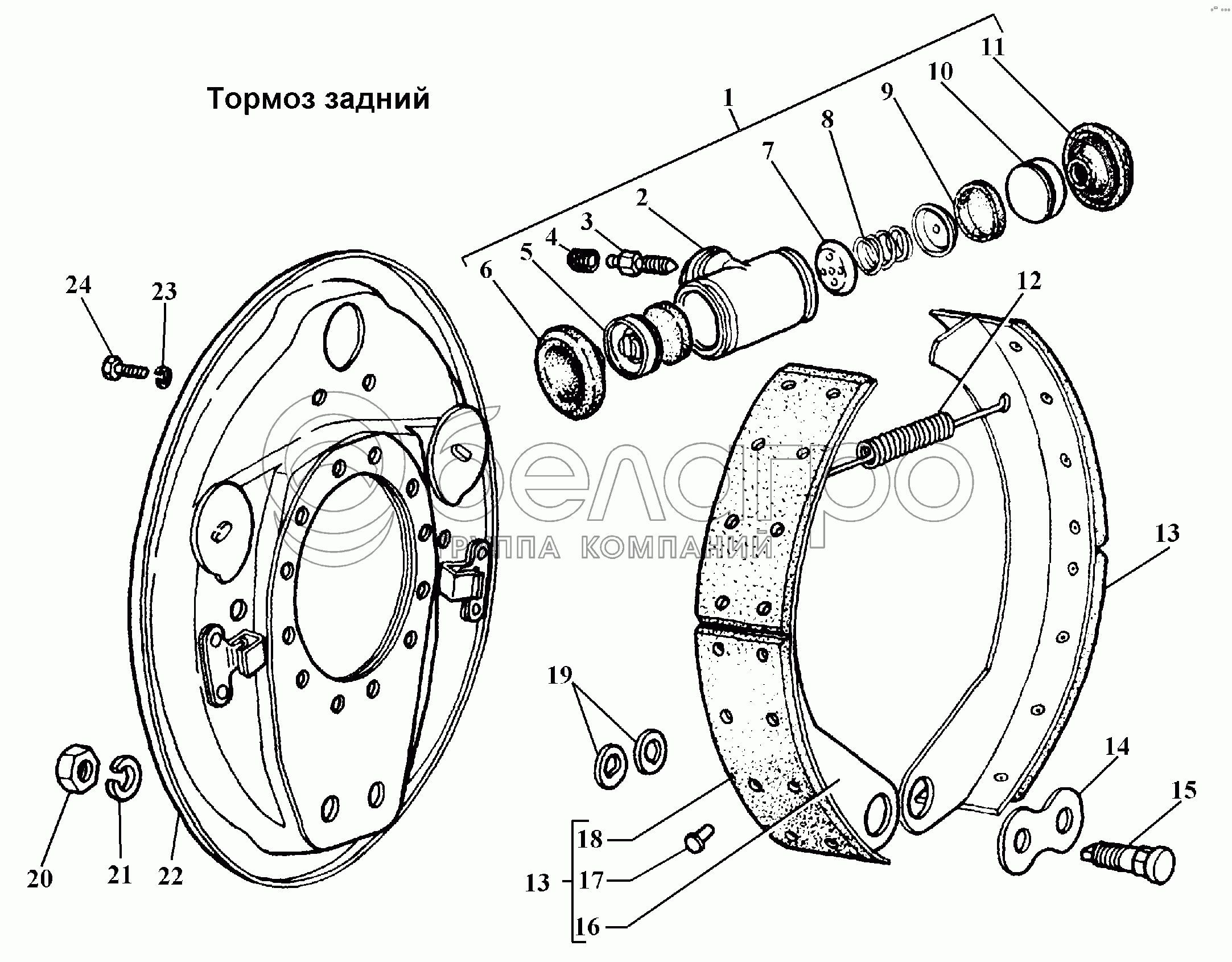 Каталог запасных частей к технике: ГАЗ-3308. Тормоз задний