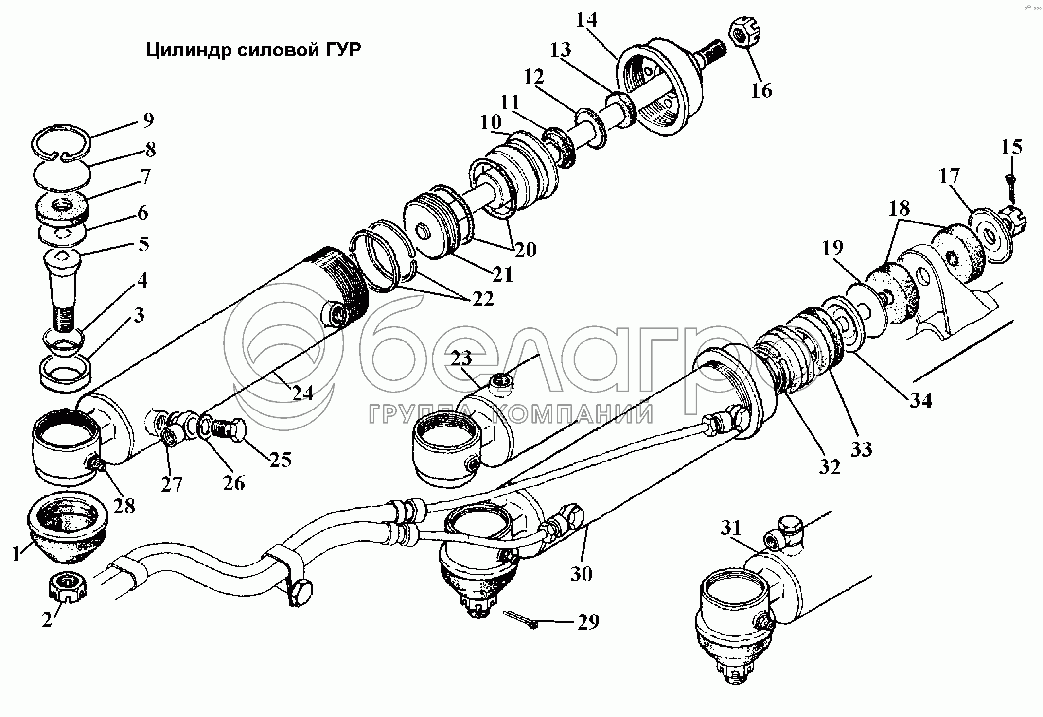 Каталог запасных частей к технике: ГАЗ-3308. Цилиндр силовой ГУР