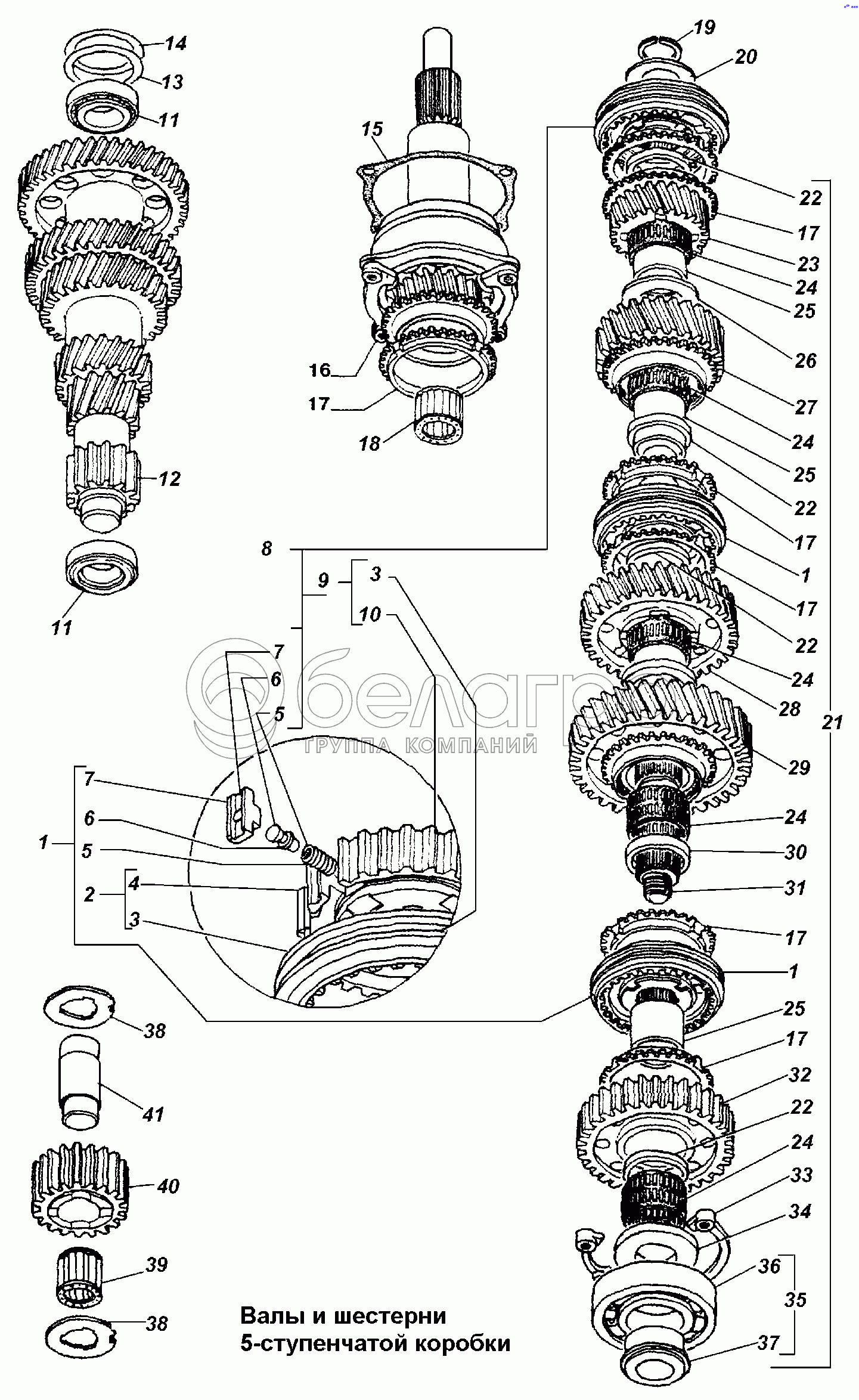 Каталог запасных частей к технике: ГАЗ-3308. Валы и шестерни 5-ступенчатой коробки