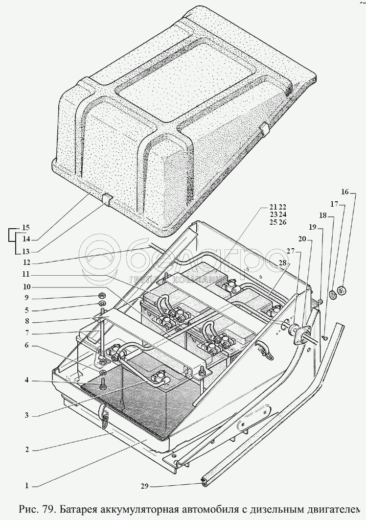 Каталог запасных частей к технике: ГАЗ-3308. Батарея аккумуляторная автомобиля с дизельным двигателем