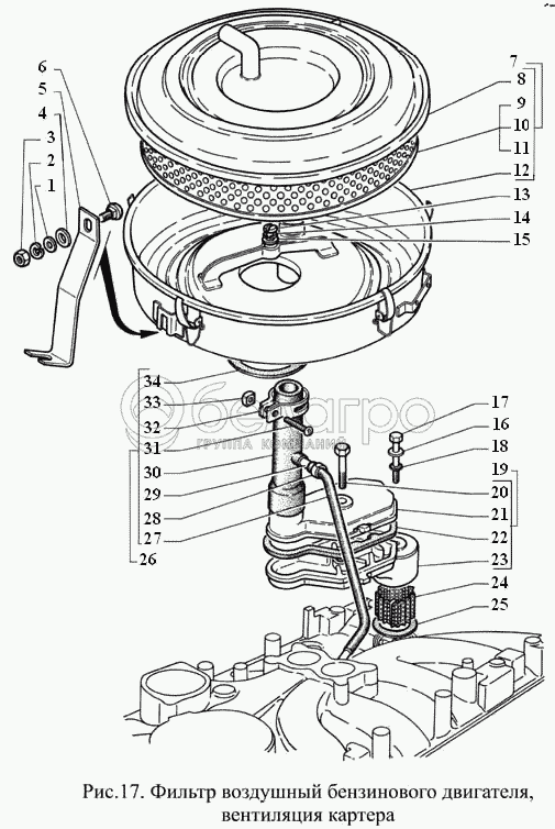Каталог запасных частей к технике: ГАЗ-3308. Фильтр воздушный бензинового двигателя, вентиляция картера
