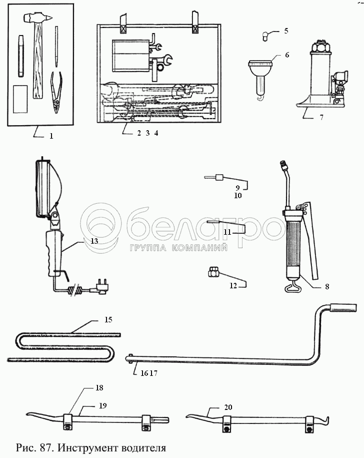 Каталог запасных частей к технике: ГАЗ-3308. Инструмент водителя