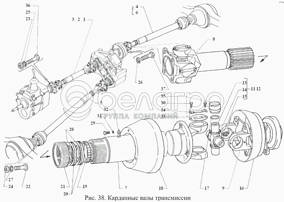 Каталог запасных частей к технике: ГАЗ-3308. Карданные валы трансмиссии