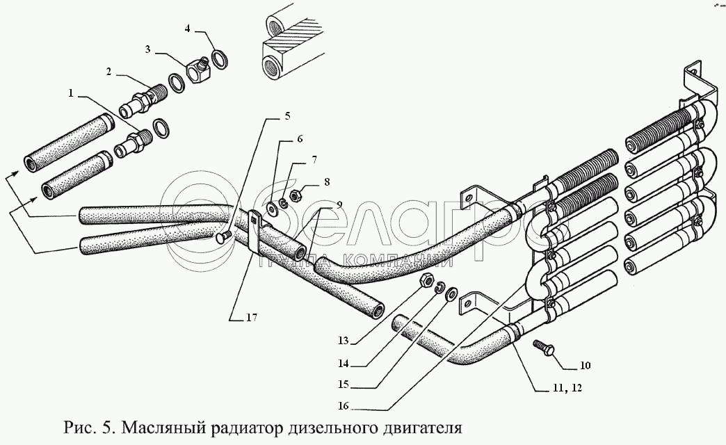 Каталог запасных частей к технике: ГАЗ-3308. Масляный радиатор дизельного двигателя