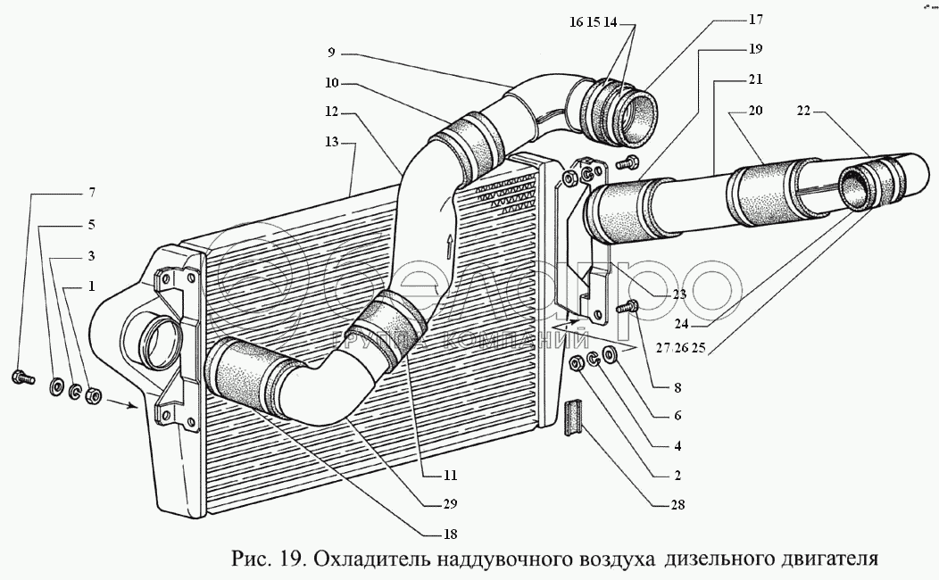Каталог запасных частей к технике: ГАЗ-3308. Охладитель наддувочного воздуха дизельного двигателя
